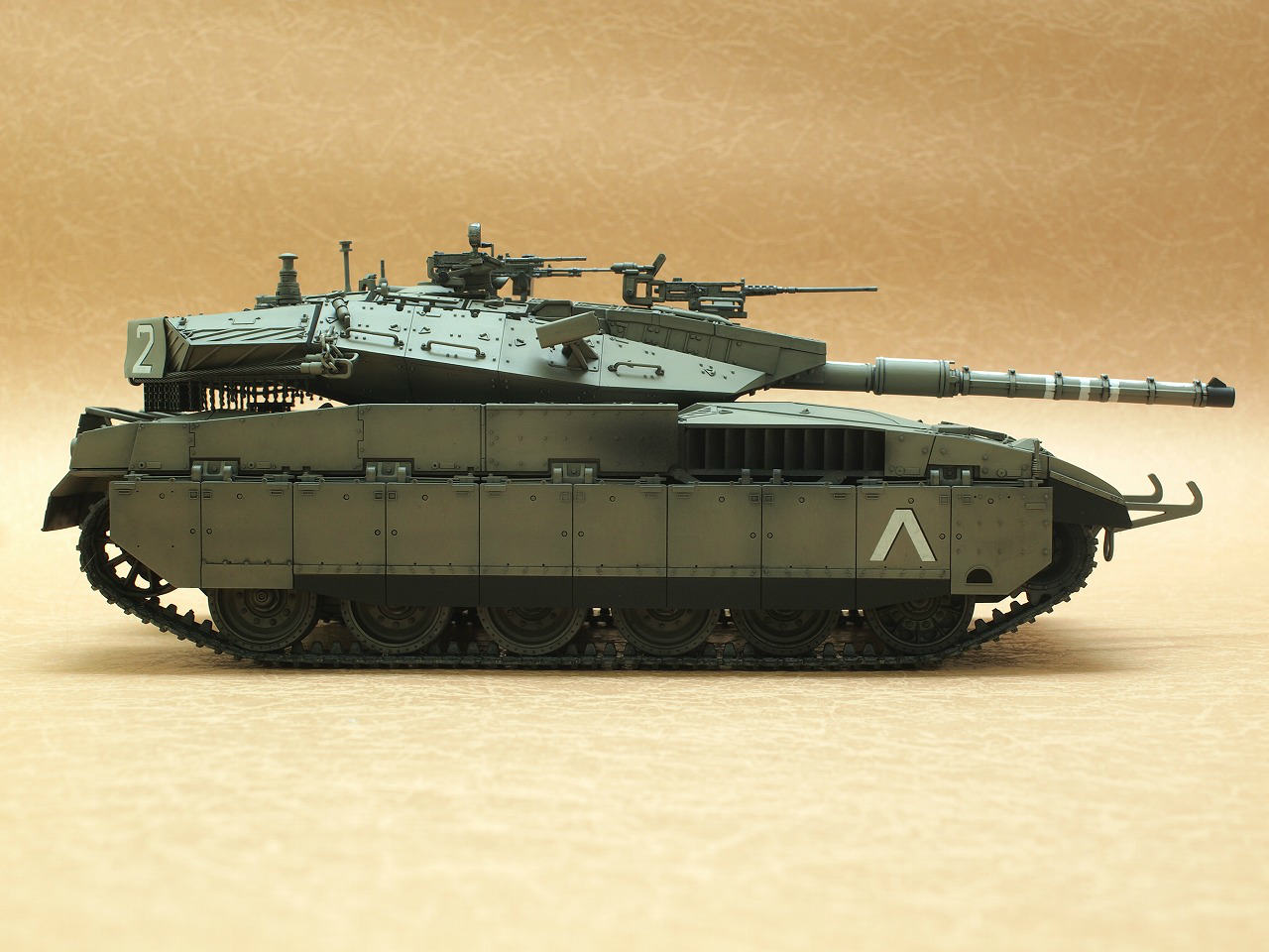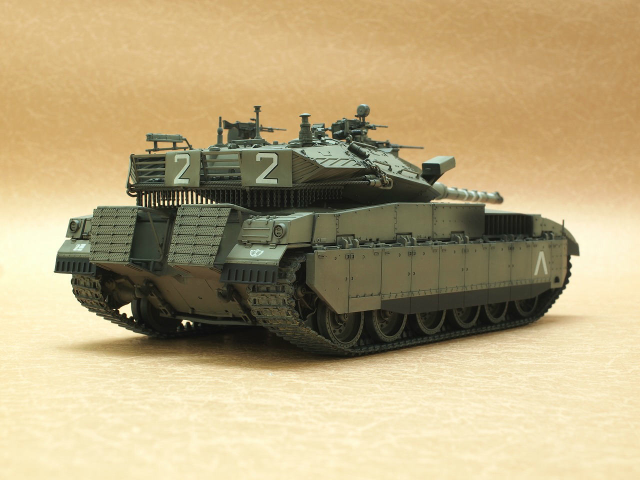 IDF Merkava MarkⅡD 2022年10月20日 by Edger ACADEMY 1/35 Merkava MarkⅢ Bazと同時進行で製作しました。塗色はモデルカステンのシナイグレーを黒立ち上げとウォッシングで仕上げています。 FacebookXBlueskyHatena